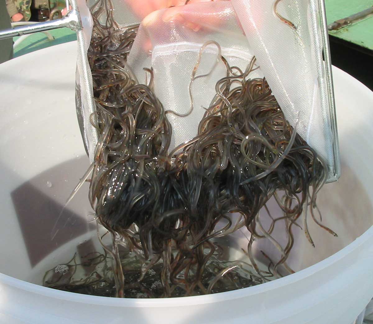 Leider ist der Europäische Aal auf Besatzmaßnahmen als Glasaal und Projekte wie dem Aal-Taxi angewiesen, damit die Bestände in einer einigermaßen gesunden Dichte bestehen bleiben!